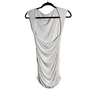 White Fox Double-Ruched Open‑Back High‑Neck Mini Dress – XS