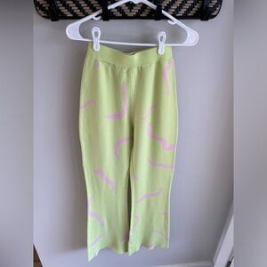 White Fox Knitted Sweater Flare Pants - Lime Green + Pink Retro Squiggle Pattern - Size Small