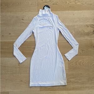 White Fox - Light Up The Skies Long Sleeve Turtle Neck Mini Dress in Stone Beige