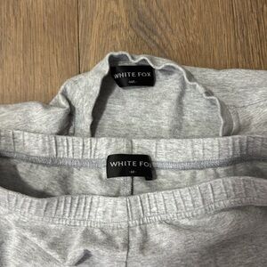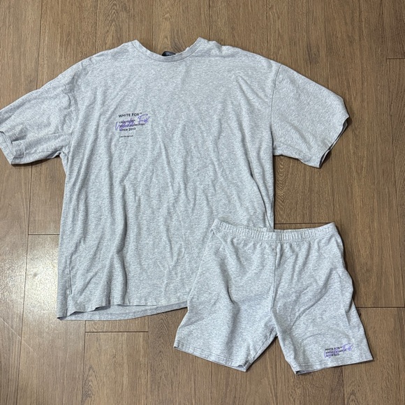 Light gray matching set from White Fox. Top medium/large and shorts are a medium. Super comfy.