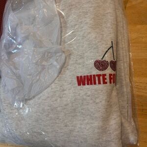 RARE, SOLD OUT: grey rhinestone shorts and hoodie set. Made with love— rhinestone cherry. Heather grey fabric. Size Small. Sold as a set. Will ship within one day of purchase, in time for Christmas! New in bag, never worn, tags attached.