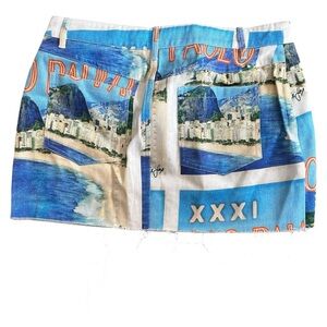 Turn heads in this bold and vibrant White Fox Boutique "Sao Paulo" mini skirt, perfect for your next vacation, beach day, or music festival. Featuring a retro postcard-inspired design with ocean and cityscape views, this skirt brings tropical energy to any look.