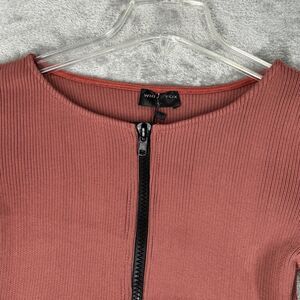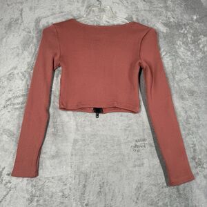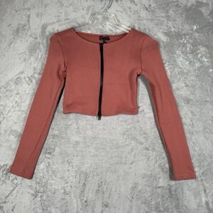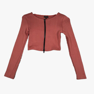 White Fox Shirt Womens Large Terracotta Ribbed Knit Cropped Zipper Athleisure