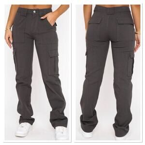 White Fox Someone To You Cargo Pants Charcoal Cotton Twill Flap Pockets Size M
