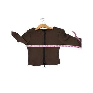 White Fox The Real Thing Brown Ribbed Double Zipper Cropped Sweater Womens XS