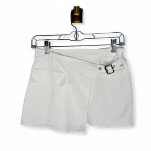 White Fox Wrap Mini Skirt Small Asymmetrical Buckle Y2K Streetwear Bratz Party