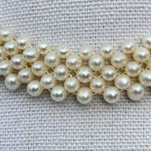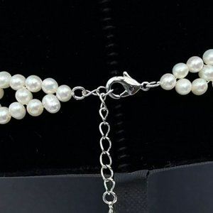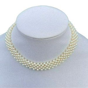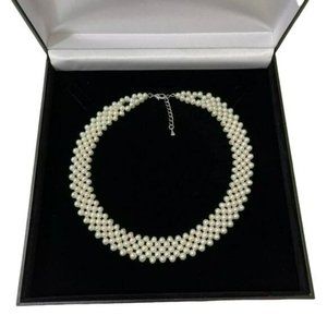 White Freshwater Pearl Multy Strand Choker Necklace 925 Sterling Silver Clasp