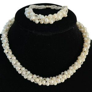 Twisted Real Cultured Freshwater Pearl And Crystal 18in Necklace And 7.5in Bracelet Jewelry Set, magnetic clasp