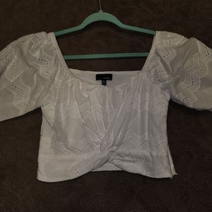 White Front Knot Crop Top