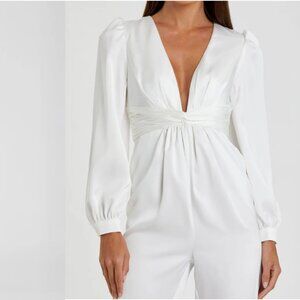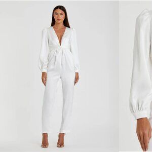 White Front Twist Puff Sleeve Deep V Jumpsuit Ieena for Macduggal