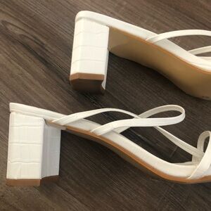 White Front strap slid on square toe Snake skin detail heel and straps size 39