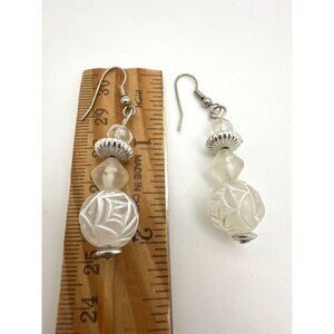 White Frosted Rose Bead Dangle Earrings Elegant Retro Romance Cottagecore