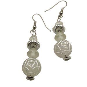 Add a touch of elegance to your outfit with these white molded acrylic bead earrings. Lightweight and versatile, these earrings suit various styles.