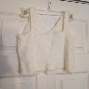 Stay cozy and stylish with this white fuzzy sleeveless top. Perfect for layering or wearing on its own. Super cute and super comfortable! Only worn a couple times! Size Small.