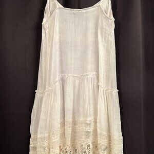 White Gauzy Crochet Lace Trim Boho Cottagecore Sun Dress Beachy Fairy Small