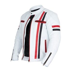 White Genuine Leather Motorcycle Jacket - Real Leather Moto Biker Jacket Mens
