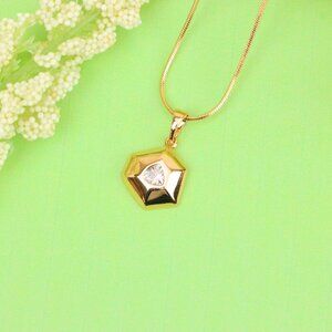 Elegant white pendant with a contemporary geometric form and dazzling center stone. Crafted in gold-plated high-quality brass for a modern, polished look.