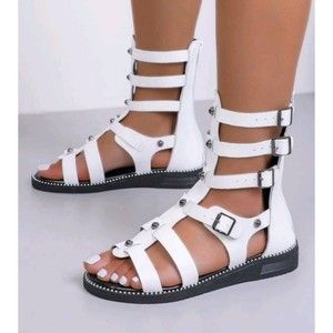 White Gladiator Sandals Ankle Size 5.5 36 Buckle Detail Studded Decor BRANDNEW
