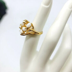 White Glass Rhinestone 18KT HGE Gold Electroplate NOS Vintage Ring Size 5