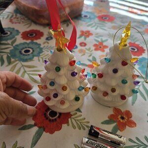White Glazed Ceramic Mini Ornament Christmas Tree Light Bulbs Ornament Set Of 2