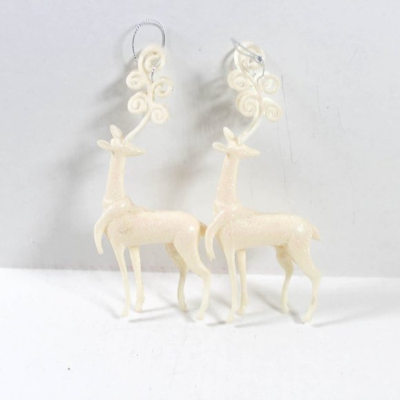 🎄White Glitter Reindeer Christmas Tree Ornaments Set of 2