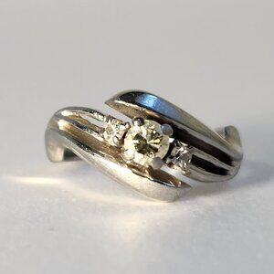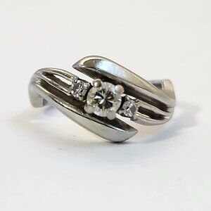 White Gold 18K Solid Natural 3 Diamond .45cts Ring Sz 5 4.28g VTG