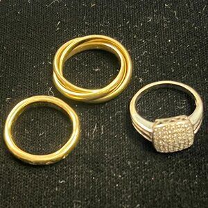 I wore this stacked with 2 gold rings as seen in photo