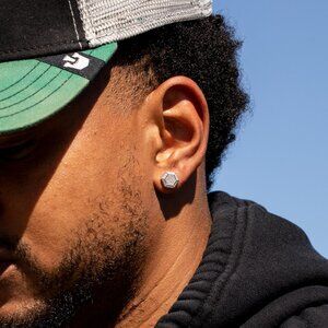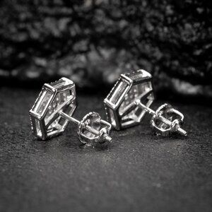 White Gold 925 Sterling Silver Men's Hip Hop Octagon Cz Stud Earrings