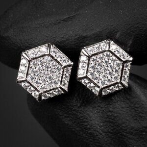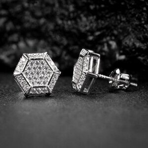 The size of these hexagon shape cluster earrings being 10.8mm will balance between a large and medium size stud making it perfect size for everyday wear. cz studs coupled with the sterling silver make for a fine, ultimately timeless piece of jewelry.