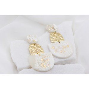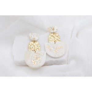 White + Gold Clay Earrings, Lightweight Earrings, Handmade Polymer Clay Earrings
