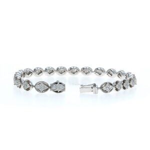 White Gold Diamond Cluster Link Bracelet 7" 6 3/4" 14k Round Brilliant 2.41ctw