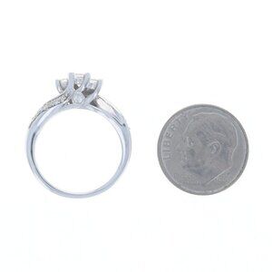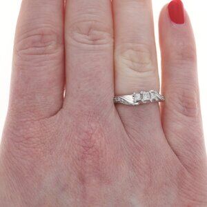 White Gold Diamond Engagement Ring 10k Princess & Rnd .50ctw Three-Stone Bypass