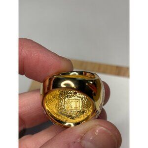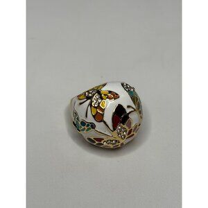 White & Gold Enamel Butterfly Statement Ring With Rhinestone Accents Size 7 KI