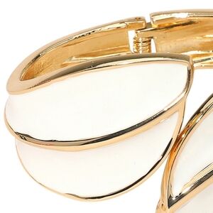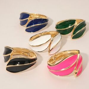 Curved Gold Leaf Hinged Wide Cuff Style Chunky Bangle Trend Modern High Gloss Enamel Statement Bracelet Fashion Jewelry Accessory