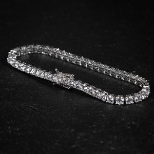 White Gold Plated 5A Cz Stone Iced Solitaire Men's Hip Hop Tennis Bracelet