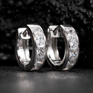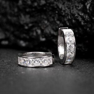 White Gold Plated 925 Sterling Silver Square Princess Cut Huggie Hoop Earrings