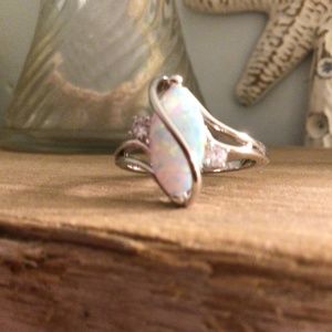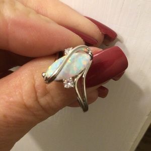 This Opal ring is the perfect ring for everyday wear or a special night out. Lab created Fire Opal is set in a brass, Silver plated band accented by cubic zirconia. Comes boxed with a full guarantee from merchandiser .