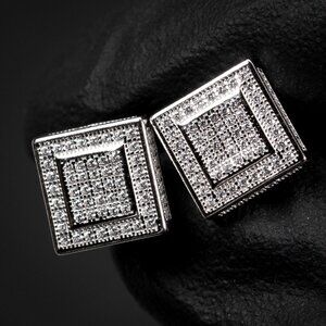 Iced Cz small square white gold 925 Sterling Silver Cluster Earrings Men women: Our medium everyday size are size 9.2mm.