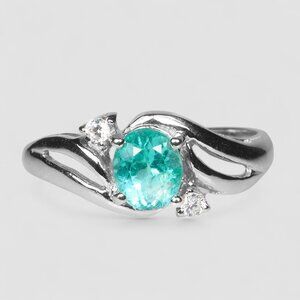 White Gold Plated Rings Blue Paraiba Tourmaline 925 Sterling Silver Size 7.25