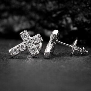 The hip hop style cross studs for men are adorned with 5A cz stones, meticulously hand set to provide a dazzling display of brilliance that will turn heads wherever you go. These aren't just any regular men’s earrings, but a true testament to your fashion sense.