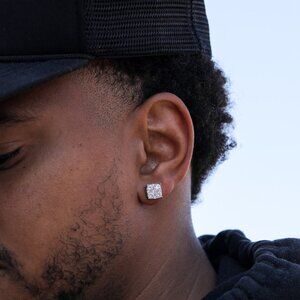 Square White Gold Round Pointer Flower Set Cluster Earring For Men: The cluster earrings for men are designed with a screw back post, ensuring they stay securely on your ears. The earrings studs for men are an excellent addition to your hip hop jewelry collection.