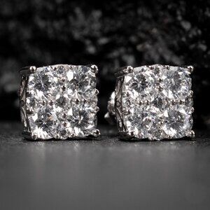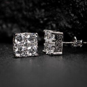 HAND MADE FLOWER CLUSTER SETTING: The mens square earrings metal is 925 Sterling Silver white gold plated. The stones feature hand made setting instead of wax setting, to ensure our stones are stronger and safer on the setting; On the other hand, the hand made setting will make the stones look more neat and will not uneven, to ensure a high-end outlook.