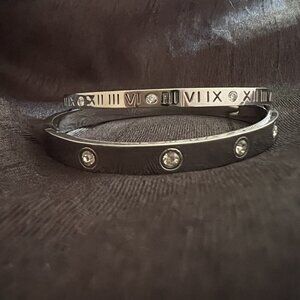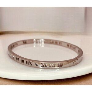 White Gold Roman Numeral Bangle Bracelet Cubic Zirconia Stackable womens jewelry