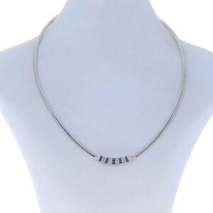 White Gold Sapphire Diamond Curved Station Necklace - 14k Princess 1.58ctw