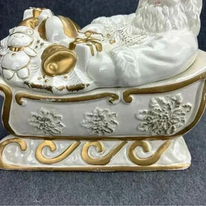 White & Gold Trim Ceramic Santa in Sleigh Cookie Jar World Bazaar's Inc. Xmas