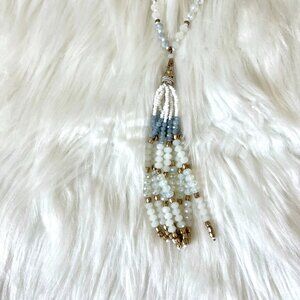 White, Gold, and Blue Tassel Necklace
