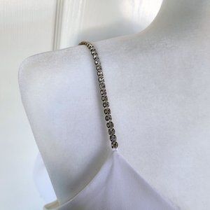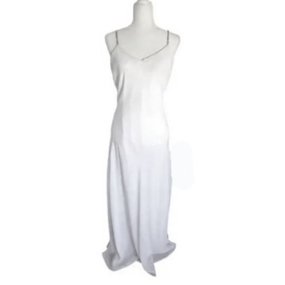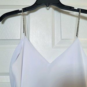 White Gown w/ Rhinestone-Studded Spaghetti Straps