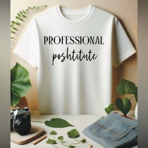 White t-shirt with bold black text design. Casual and stylish.
