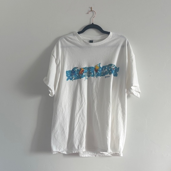 Stylish white graphic t-shirt with a vibrant design. Perfect for casual wear. 100% cotton.
