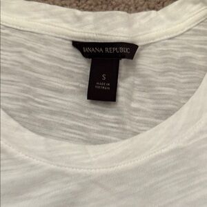 This Banana Republic oversize t-shirt features a crisp semi-sheer variegated white color with a black and gray graphic design, offering a stylish contrast. Crafted with short sleeves, a classic crew neckline and scoop bottom, it provides a relaxed oversized fit perfect for everyday wear. Excellent used condition.